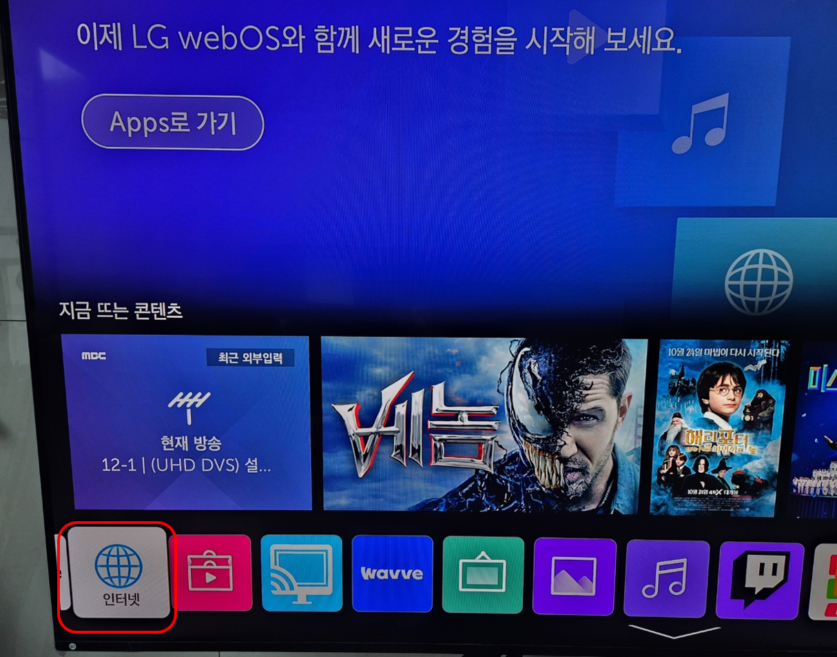 간단하게 TV에서 보려면 Smart TV 메뉴에서 인터넷 메뉴로 들어갑니다.