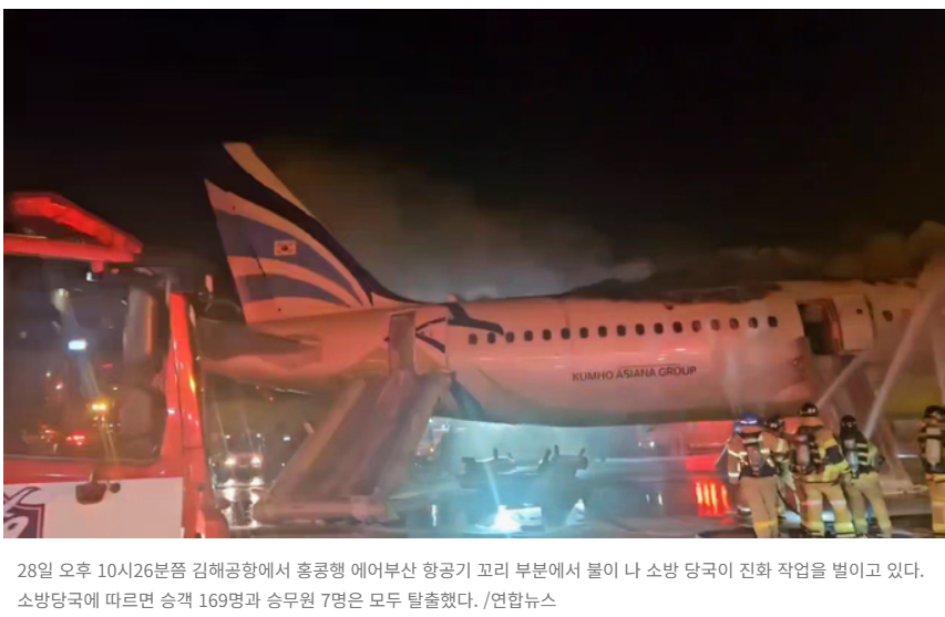 어제(28일) 밤 김해공항에서 홍콩으로 출발하기 위해 대기 중이던 에어부산 BX391편 항공기에서 불이 났다고 합니다. 탑승하고 있던 승객과 승무원 등 176명은 모두 비상 탈출했는데, 이 가운데 3명이 부상을 입었다고 하는데요.
