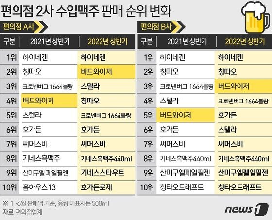 흔히 먹는 맥주의 순위가 흥미롭습니다.