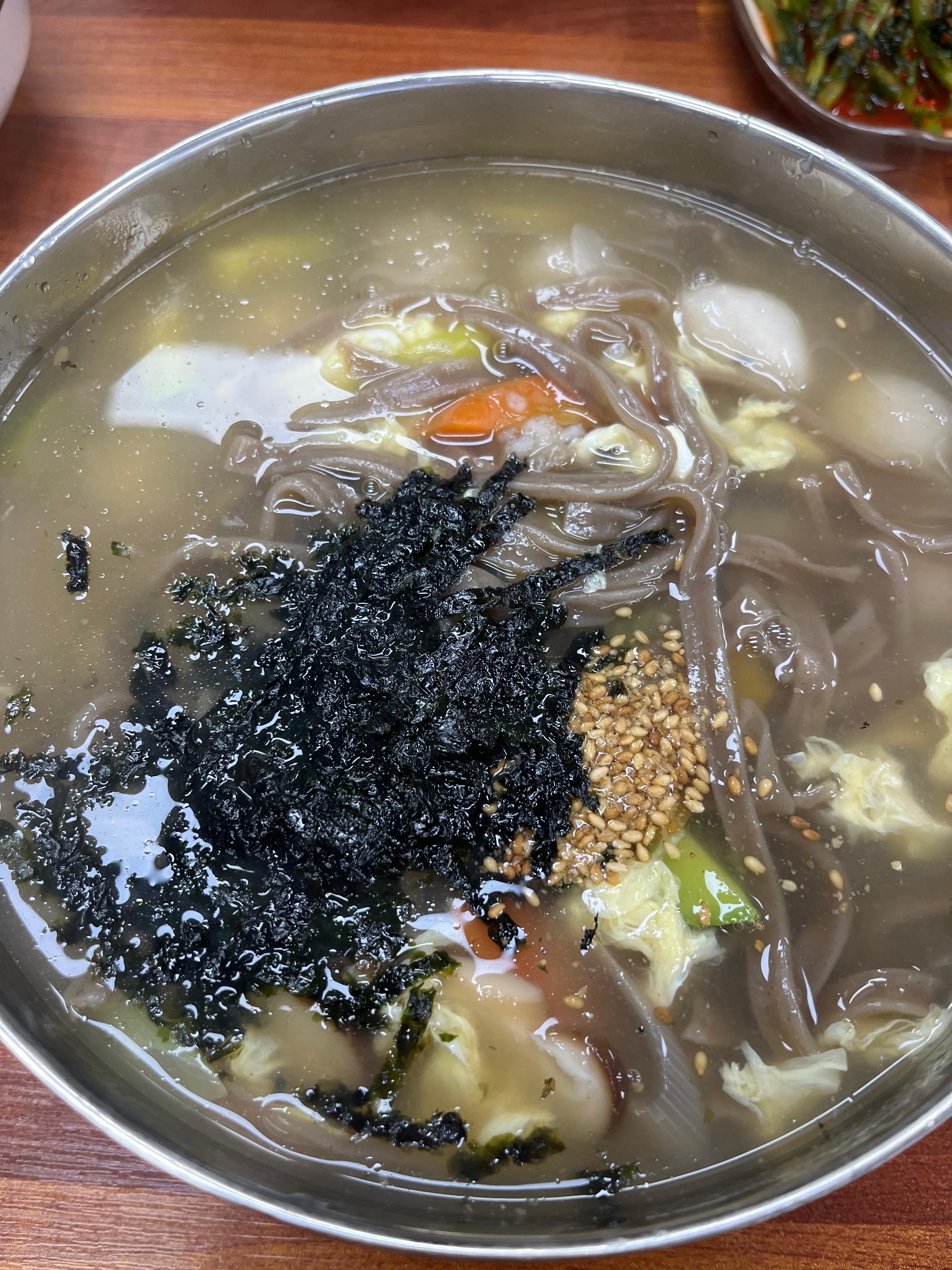 장점 : 물막국수, 비빔막국수에 요즘 들어 맛들인 들기름막국수도 판매중. 만두국이나 불고기, 육개장이 있어서 메밀이나 옹심이파가 아닌 사람을 데려가도 무난하게 고를 수 있음.