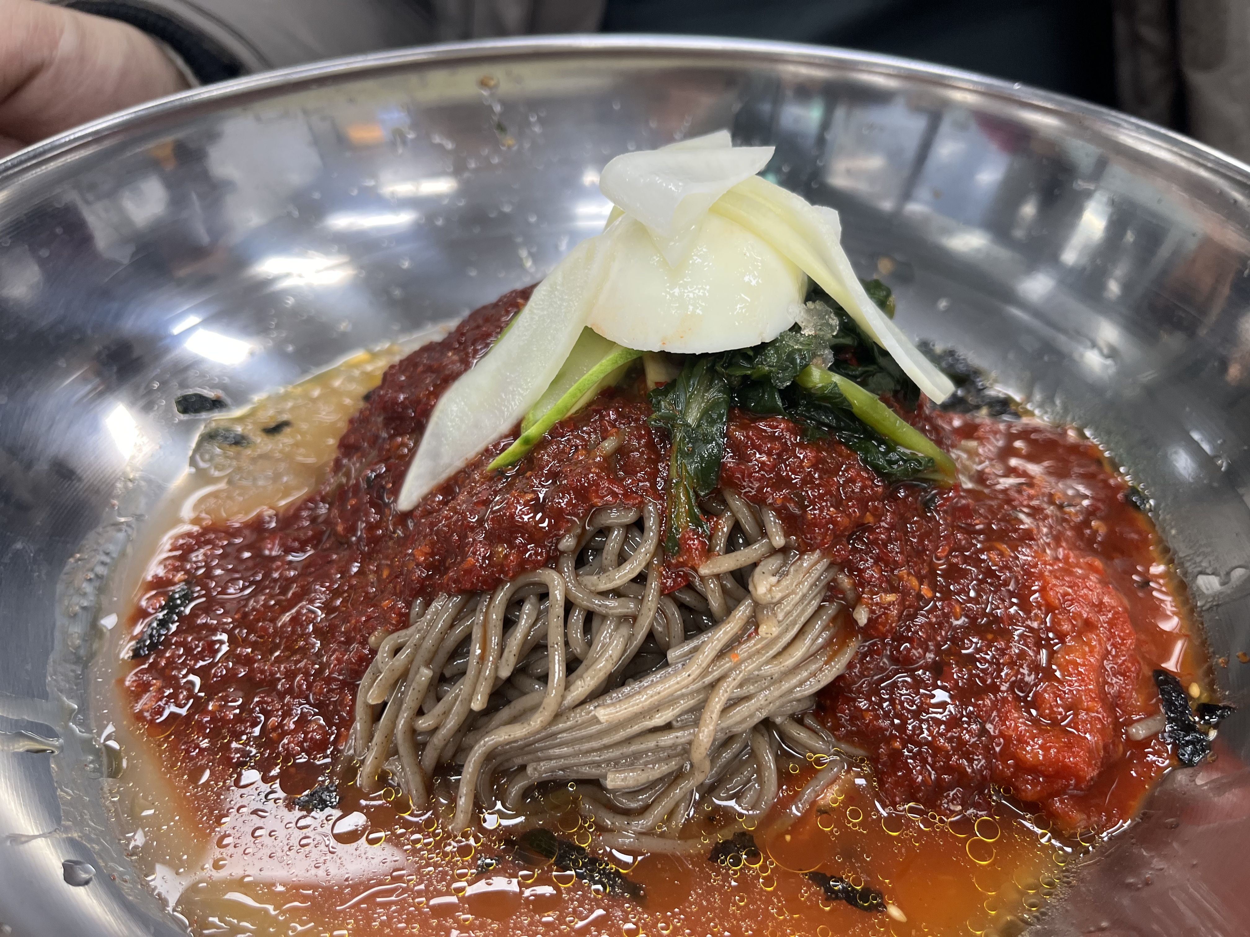 막국수가 등장했다. 오픈한 날 즈음이라 손님이 가득해서 그랬는지 막국수가 나오는 데 조금 시간이 걸렸다.