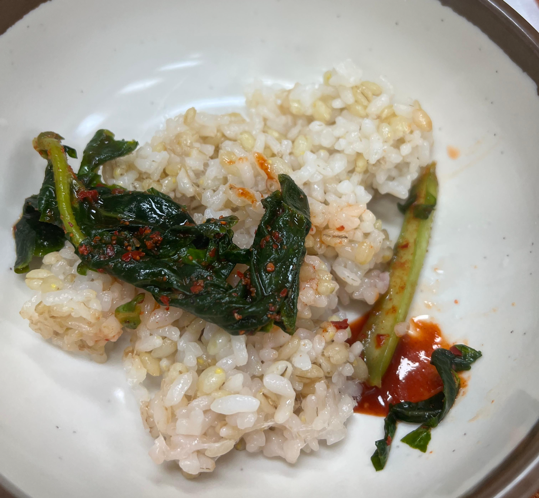 옹심이 칼국수를 시킨 경우에 보리밥과 고추장이 나와서 비벼먹을 수 있다. 다만, 둘이서 갔어도 1명만 주문했기 때문에 보리밥을 한 명만 줄 수 있다고 하셨다. 한 사람만 먹는다니 섭섭하기는 했지만 이집의 규칙이 그러하니 어쩔 수 없었다.