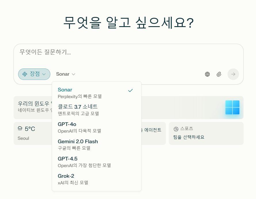 퍼플렉시티 프로의 경우 클로드 3.7 소넷, GPT-4.5 등 여러 생성형 AI의 최신 모델을 한꺼번에 사용할 수 있으니, 1년간은 한번 체험하기에 좋을 것 같습니다.