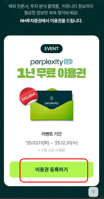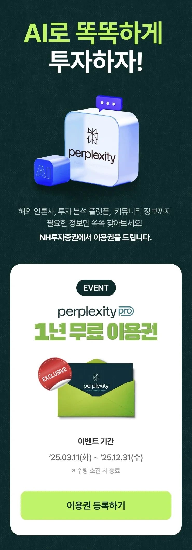 바로 AI로 투자하기 위해서 Perplexity 1년 무료 이용권을 지급하고 있는데요.