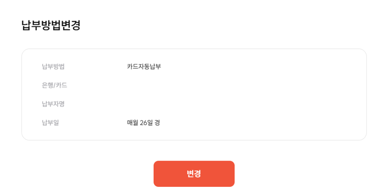 이후 납부방법 변경을 통해서 신규 카드로 변경까지 완료했습니다.