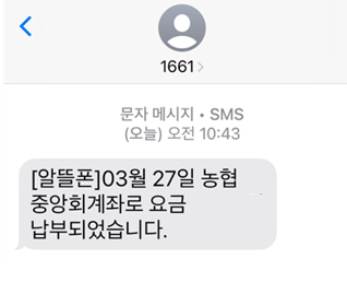 문자로도 미납 완료했다고 문자가 옵니다.