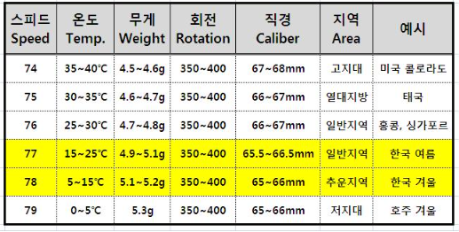 즉 한국 여름에는 77이 적혀져 있는 셔틀콕을 사용하는 것이 좋습니다. 실제로 셔틀콕 생김새만 가지고 판단하기는 쉽지 않습니다.