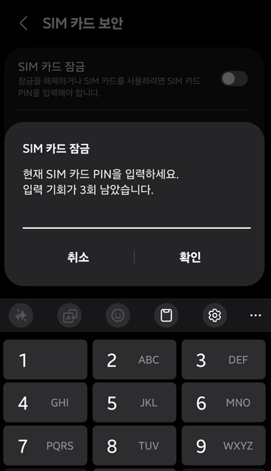 SIM PIN번호 설정시 주의사항