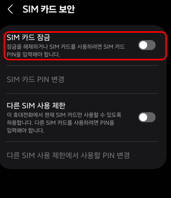 그리고 SIM 카드 잠금을 활성화하시면 잠금 해제나 SIM카드 사용시 PIN 번호를 입력해야 합니다.