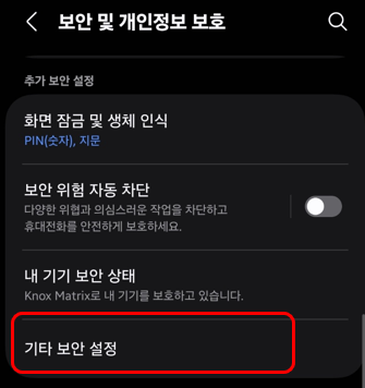 이후 기타 보안 설정 메뉴로 진입합니다.
