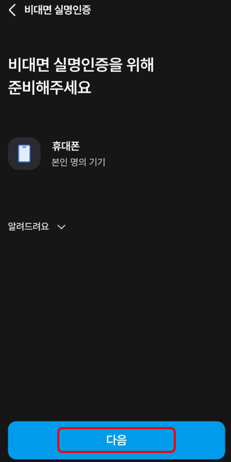 이후 이제 본인인증을 비대면으로 진행하는데요. 일반적으로 스마트폰 인증으로 진행됩니다.