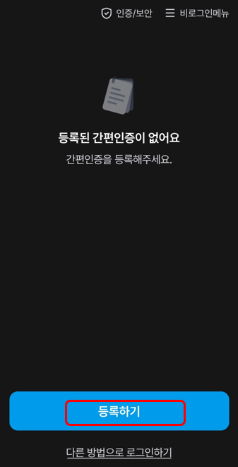 이후 등록하기를 눌러서 간편인증을 새롭게 해줍니다.