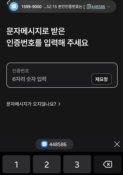 이후 문자로 온 인증번호를 넣어주시구요.