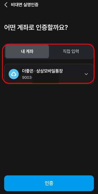 이후 비대면 실명인증을 위해서 신분증과 계좌인증 과정이 추가됩니다.