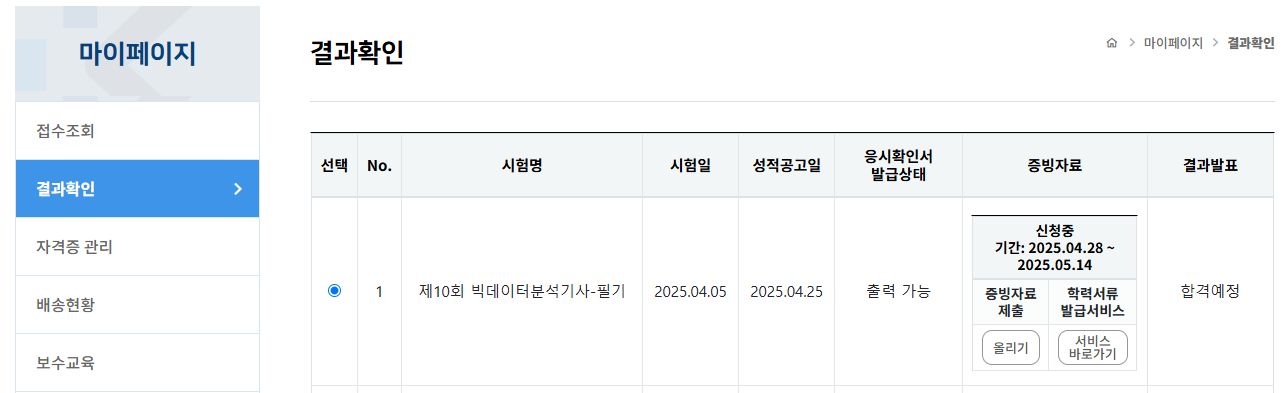빅데이터 분석기사는 Qnet에서 하는 다른 기사 자격증과 연동이 자동으로 안되기 때문에 자격 조건에 맞는 서류를 별도로 제출해야 합니다.
