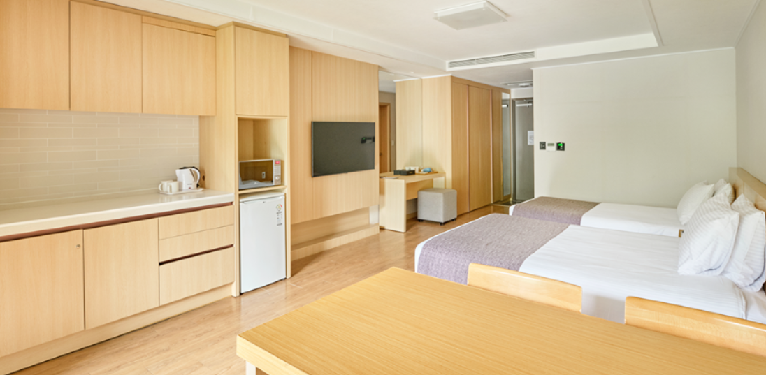 기본적으로 티비와 냉장고 전자렌지가 있습니다.