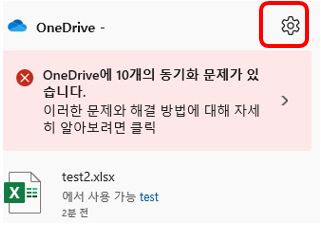 먼저 작업표시줄에 있는 원드라이브를 클릭해서 설정 메뉴로 들어갑니다.
