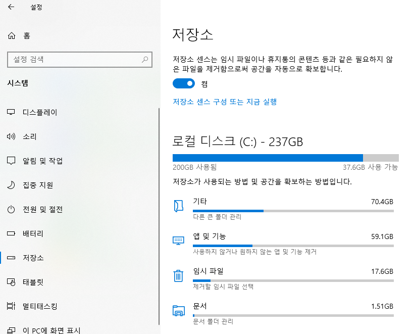 이에 따라 PC 대부분의 용량을 원드라이브가 잡아먹는경우가 생깁니다.