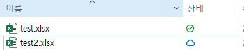 클라우드 모양이 있으면 클라우드에만 있고 PC에는 없는 상황이고, test.xlsx처럼 한번 실행하면 초록색 체크로 변경되는데요.