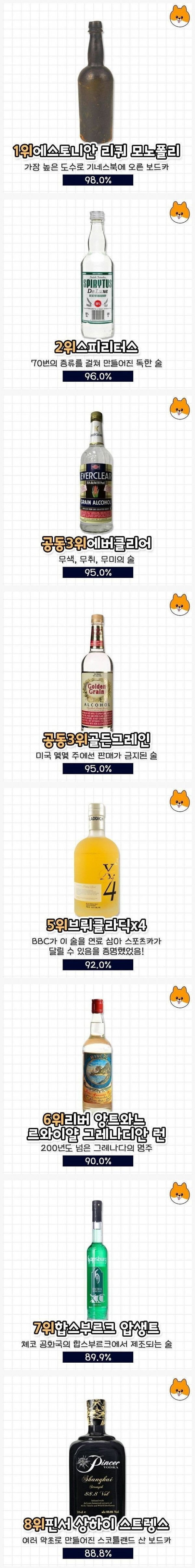 세계에서 가장 독한 술 순위가 공개되었습니다. 먼저 기네스 인증을 받은 1위는
