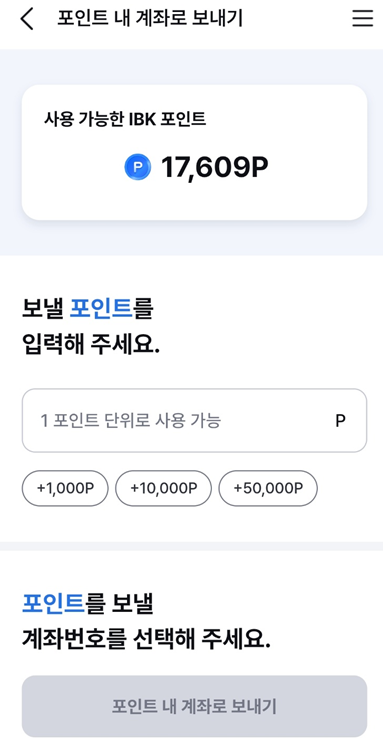 일반적으로 IBK은행 계좌가 있다면 포인트 내 계좌로 보내기가 가장 무난한데요. 바로 현금화할 수 있기 때문입니다.