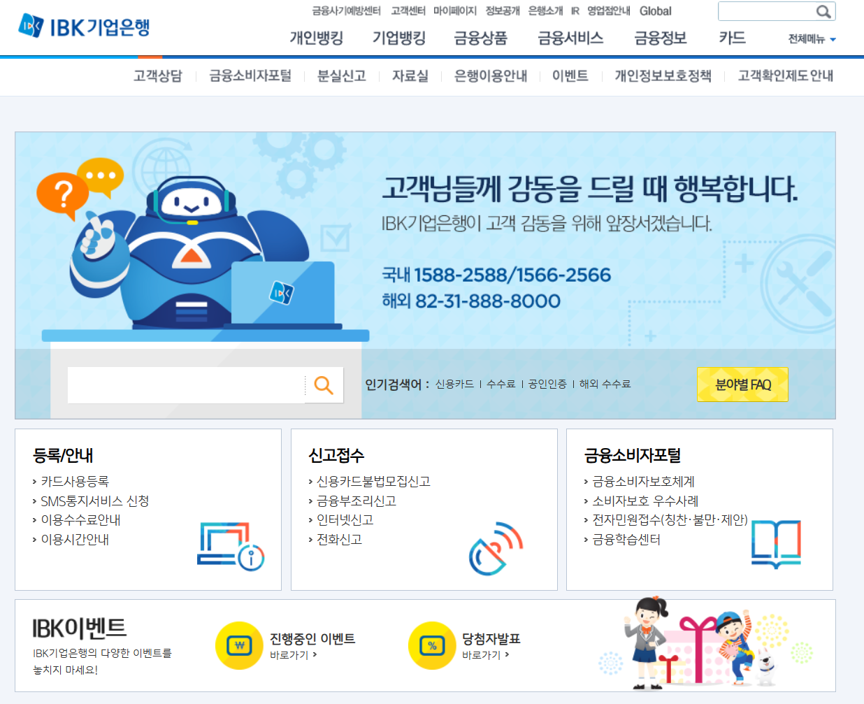① IBK카드 고객센터(1588-2588, 1566-2566)로 전화하신 후
