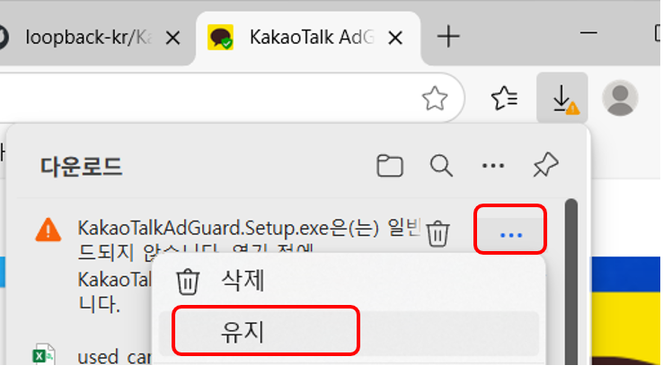 다운로드가 잘 안된다면 상단의 더보기를 눌러서 유지를 눌러주시기 바랍니다.