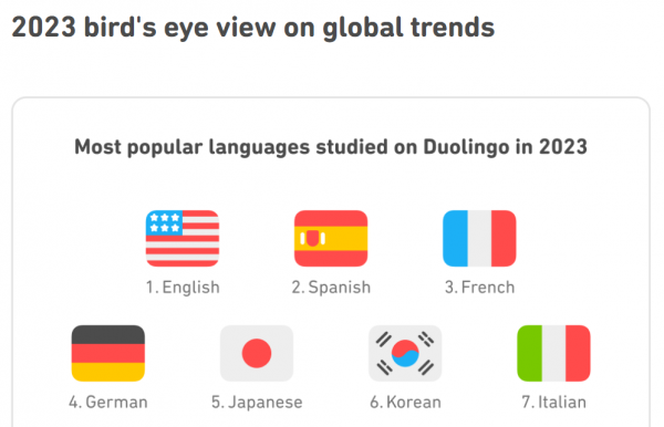 그리고 이 듀오링고에서 영어/스페인어/프랑스어/독일어/일본어 다음으로 6번째로 가장 학습을 많이 하는 언어라고 합니다.