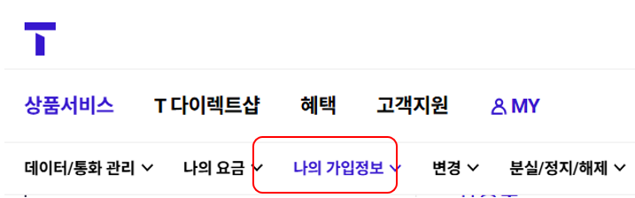 티월드 - MY - 나의 가입정보로 가시면 확인할 수 있는데요.