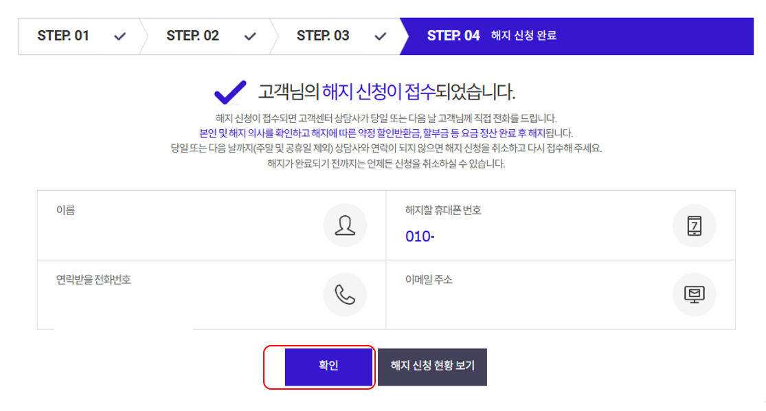4단계에 걸쳐서 해지가 진행됩니다.