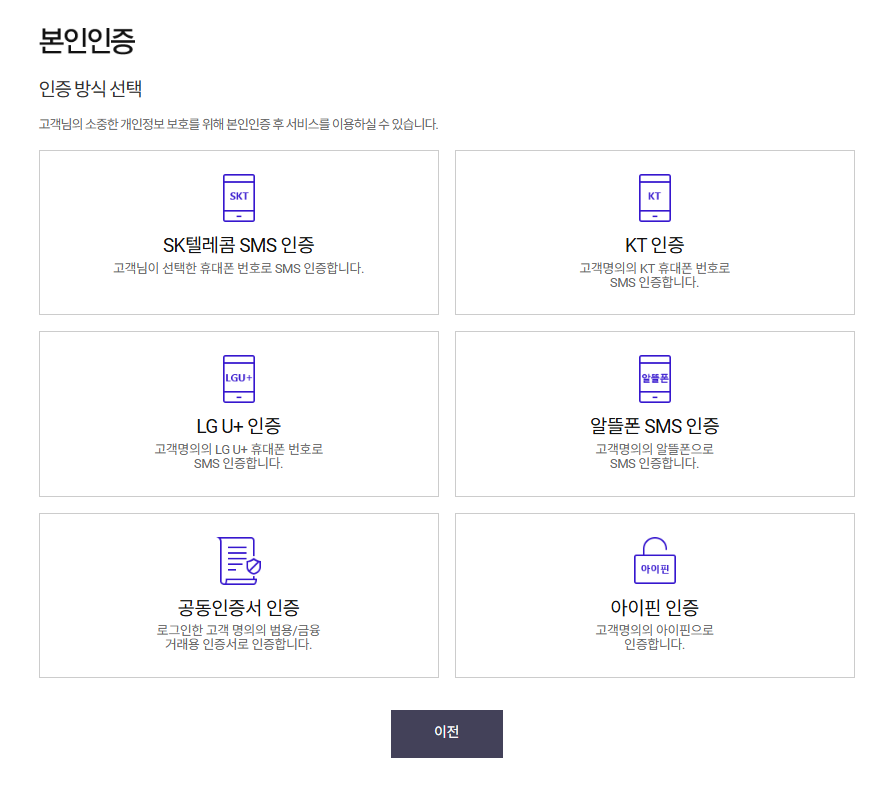원하시는 방식으로 본인인증 하시면 됩니다.