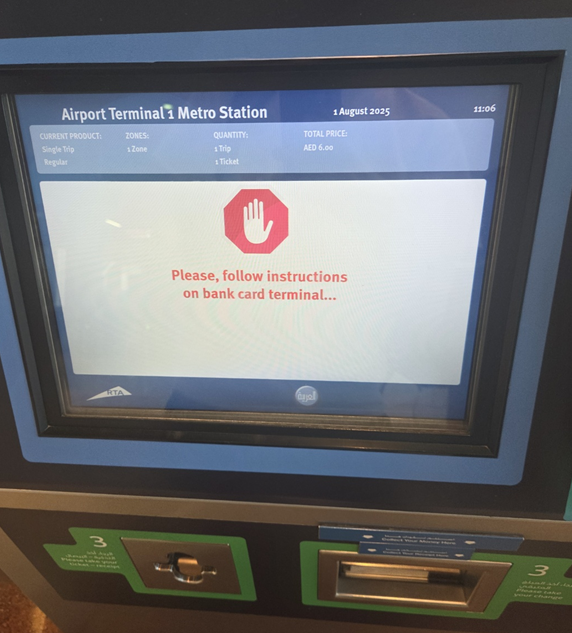 ATM을 통해 티켓을 발권 받으면 되고 1터미널에서 3터미널까지는 6다르함입니다.