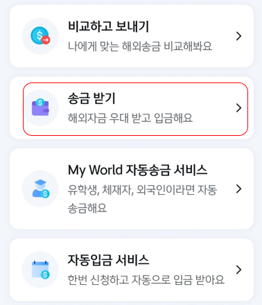 하단에 위치한 송금 받기를 누르시면 송금이 가능합니다.