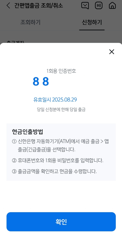 이렇게 긴급하게 결혼식장 등에서 인출이 필요할 때 별도의 카드 없이도 인출이 가능합니다.