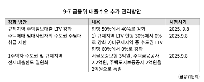 정부는 강남3구와 용산구 등 규제지역에서의 주택담보인정비율(LTV) 상한이 현행 50%에서 40%로 강화하며, 1주택자의 전세대출 한도는 보증기관과 상관없이 2억원으로 축소되고, 주택매매·임대사업자는 규제지역 뿐만 아니라 수도권에서도 주택담보대출을 받을 수 없게 된다고 발표했습니다.