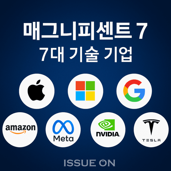 7은 현재 세계 기술 산업을 선도하고 있는 7개의 기업을 의미합니다. 매그니피센트 7이라고 불립니다.
