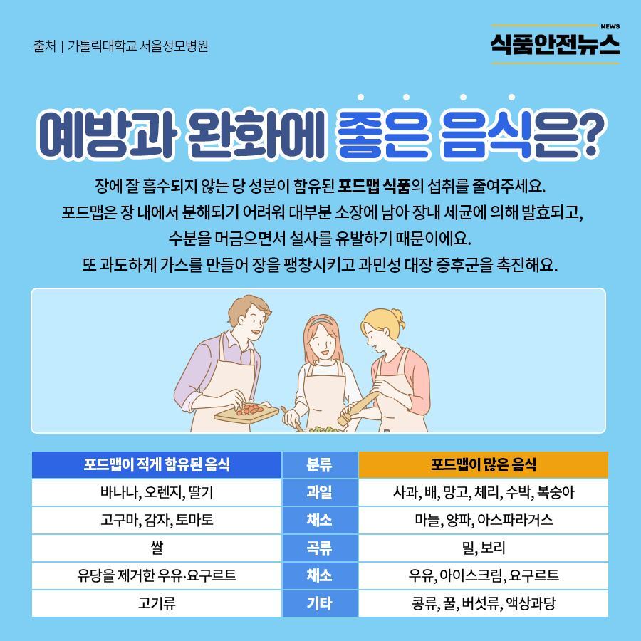 그리고 포드맵 식품의 섭취를 줄이는 것을 추천하는데요.