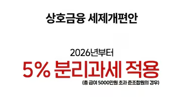 이런 비과세 상품이 전체적으로 변경되는데요. 상호금융 세제는 현재 1.4%의 농어촌 특별세만 받는 것에서 5% 분리과세로 변경됩니다.