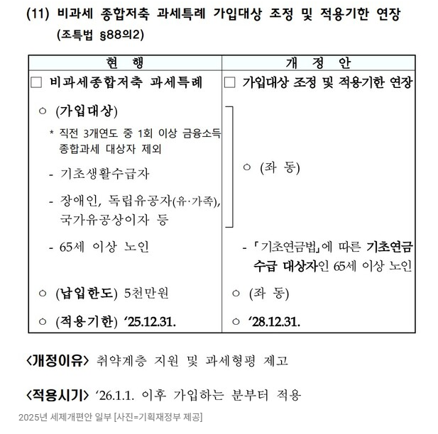 내년부터 비과세 종합저축의 가입 자격이 만 65세 이상에서 만 65세+기초연금 수급자로 변경됩니다.