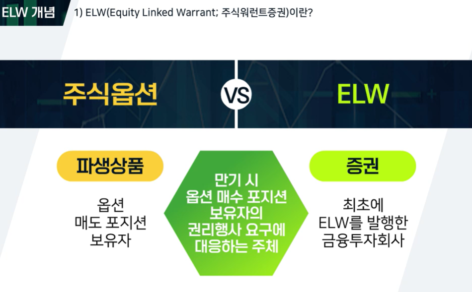 ELW(Equity Linked Warrant )는 증권사가 발행하는 유가증권 형태로, 투자자는 주식 계좌에서 매수만 가능하며, LP(유동성 공급자)가 시장에 유동성을 제공합니다.