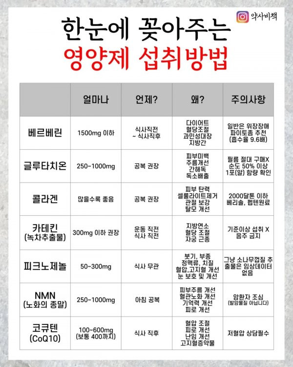 영양제 섭취시 주의사항 및 병용 금기