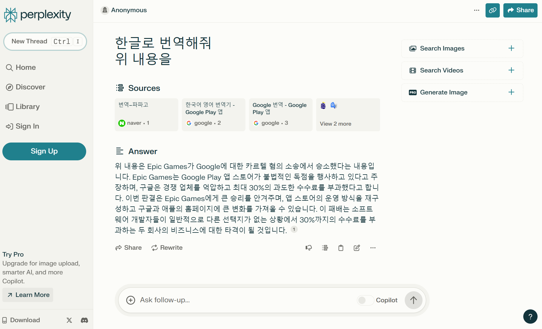 1. Perplexity - 인용과 모바일 앱이 있는 ChatGPT 경쟁자.