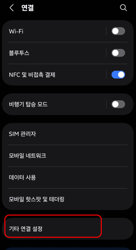 기타연결 설정 메뉴에 가시면 확인할 수 있는데요.