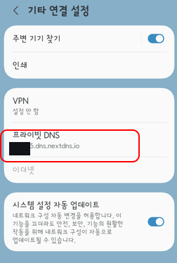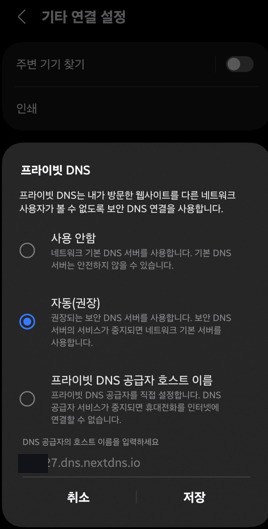 NextDNS 등을 사용했다면 아래처럼 프라이빗 DNS가 설정되어 있을텐데요.