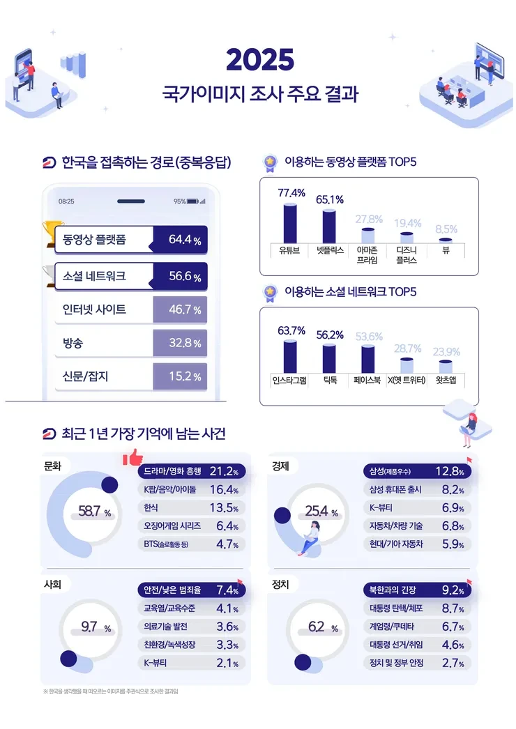 2025년 대한민국 국가이미지 조사 결과’ 발표, 한국 문화콘텐츠 성장에 힘입어 조사 이래 한국에 대한 외국인 호감도 최고 수준 기록했습니다.