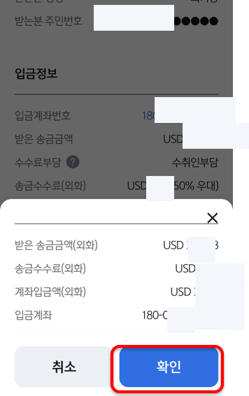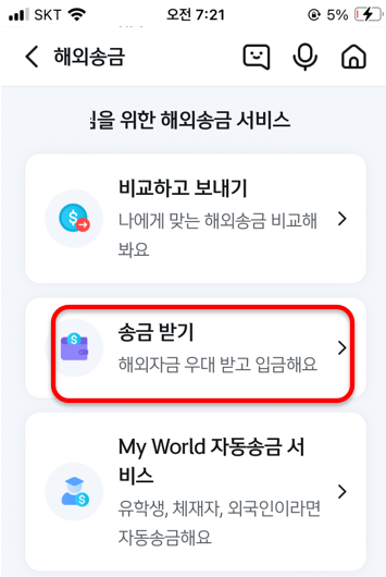 송금받기를 누르면 1달동안 받은 해외 송금 내역을 조회할 수 있구요.