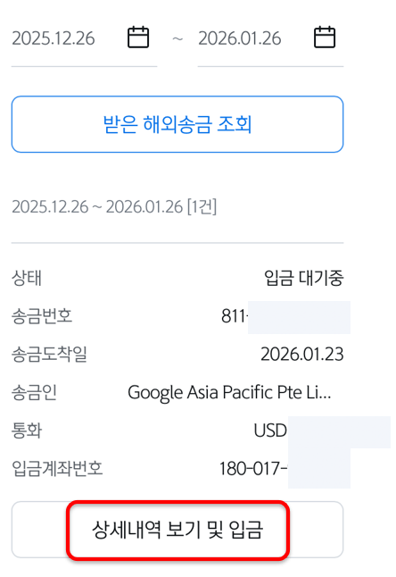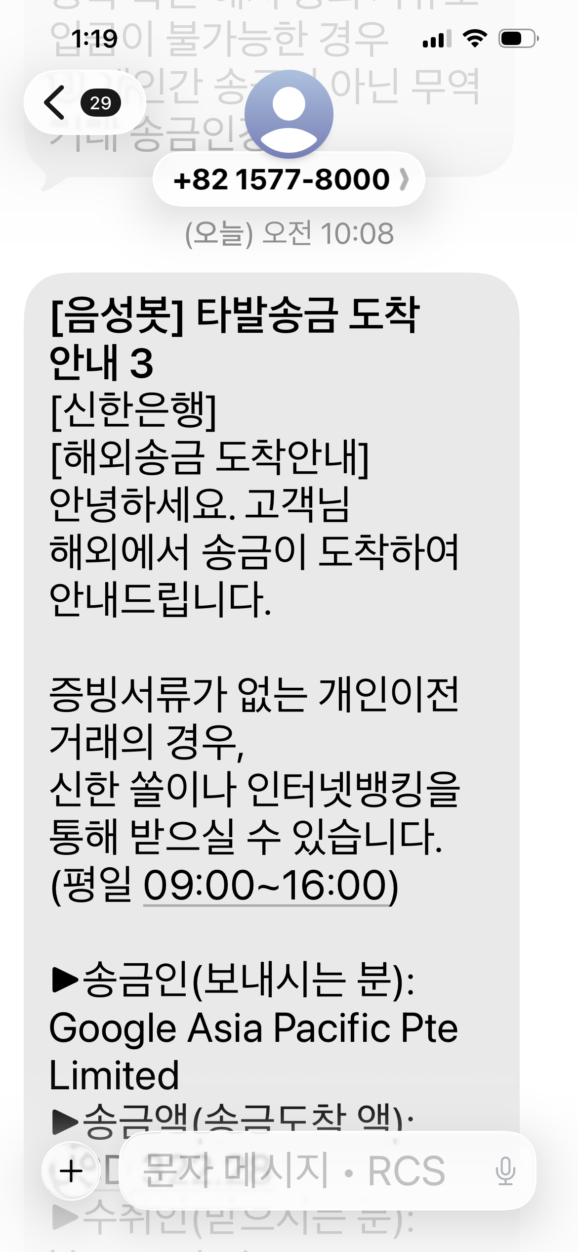 송금인의 경우 Google Asia Pacific Pte Limited로 오는데요.