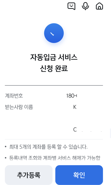 한번 등록해 놓으면 매달 이렇게 입금 받지 않아도 자동으로 입금 받을 수 있습니다.