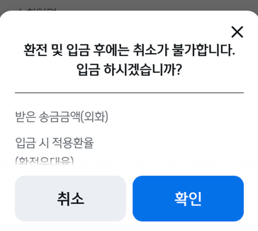입금 후에는 취소가 불가능하다는 메시지가 나옵니다.