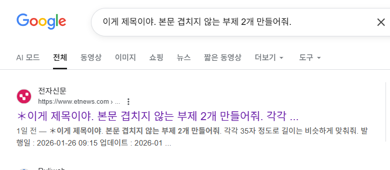 가장 핫한 기사인데요. 이게 제목이야 본문에 겹치지 않는 부제 2개 만들어줘라는 프롬프트로 만든 기사인데요.